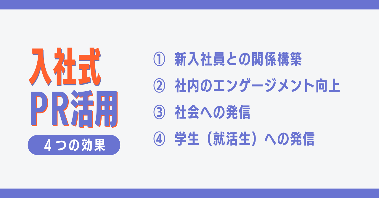 こうした事例を整理してみると、入社式には多様な活用の仕方があることが分かります。さまざまな考え方があると思いますが、ここではその効果を4つに整理してみました。