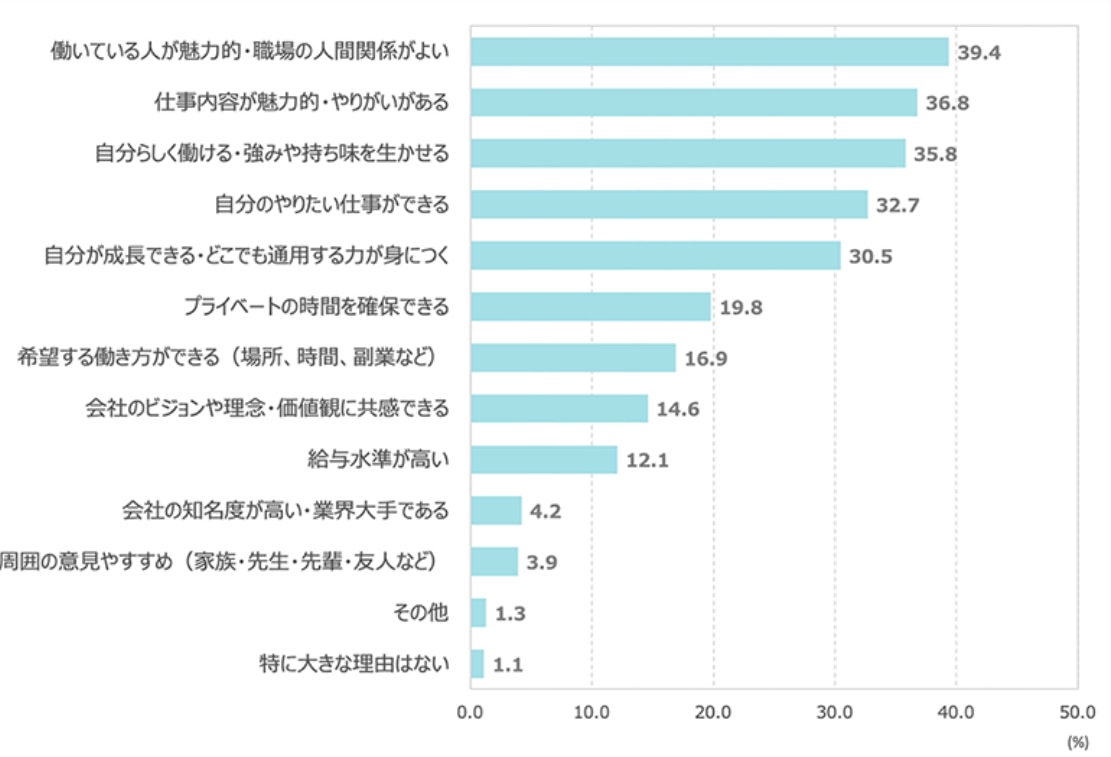 Q:あなたが就職先の会社を選ぶうえで重視していたものは何ですか?